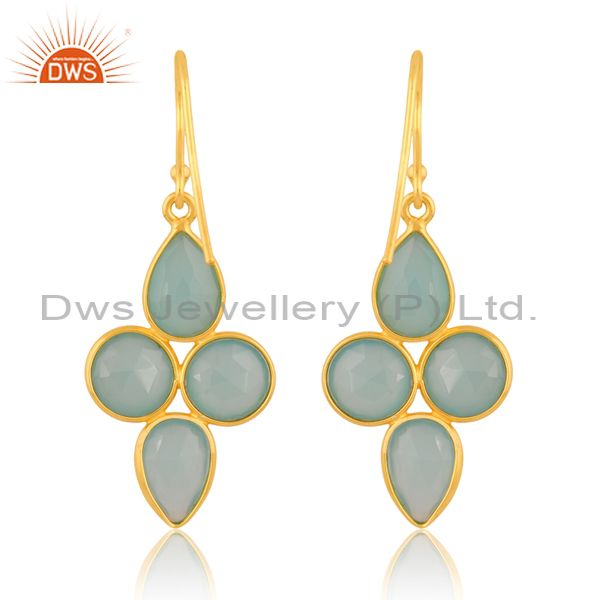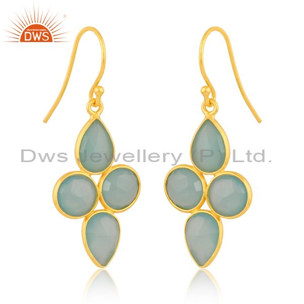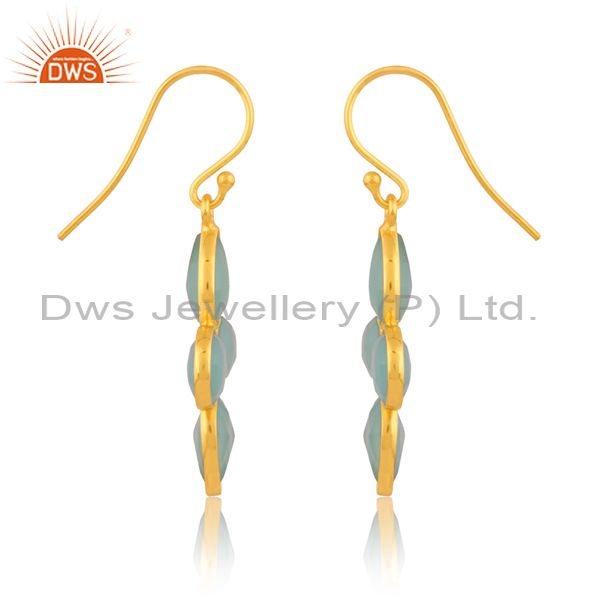 Aqua Chalcedony 18K Gold Plated Sterling Silver Earring