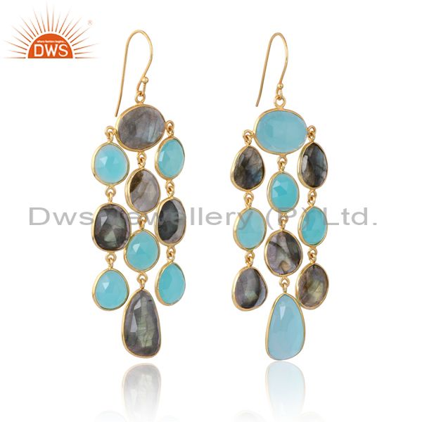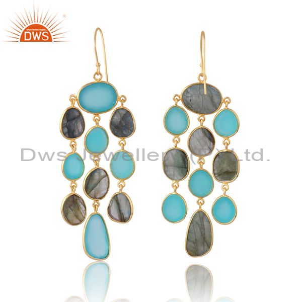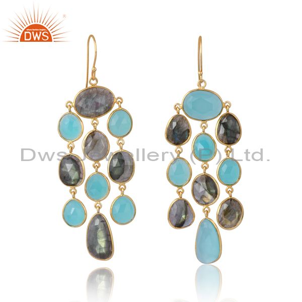 Aqua Chalcedony And Labrodorite Drops Women In Silver