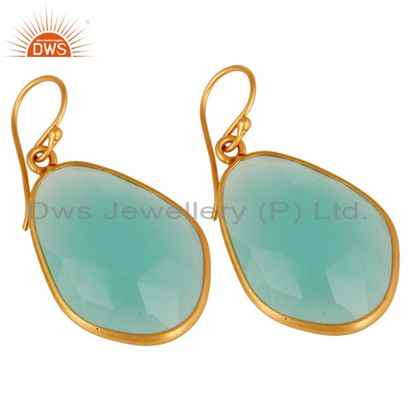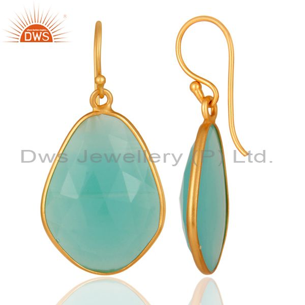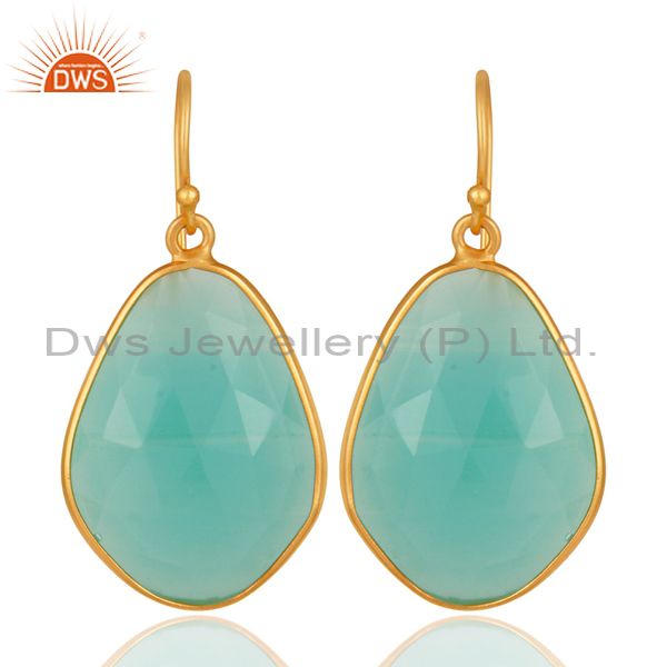 Aqua Chalcedony Dangle 14K Gold Plated 925 Sterling Silver Earrings Jewelry
