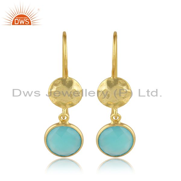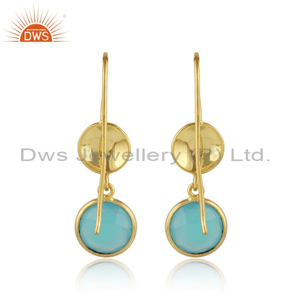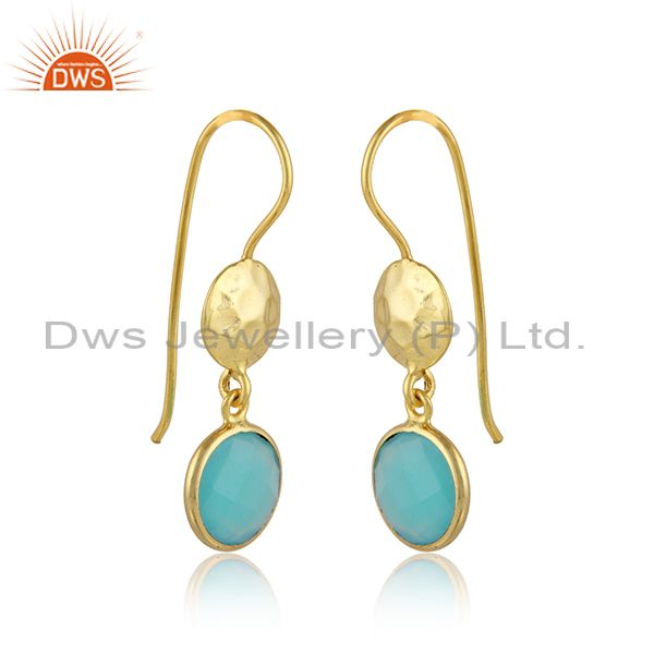Aqua Chalcedony Dangle 14K Yellow Gold Plated Sterling Silver Earrings Jewelry