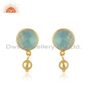 Aqua Chalcedony Gemstone 925 Silver Gold Plated Chain Earring Manufacturer India
