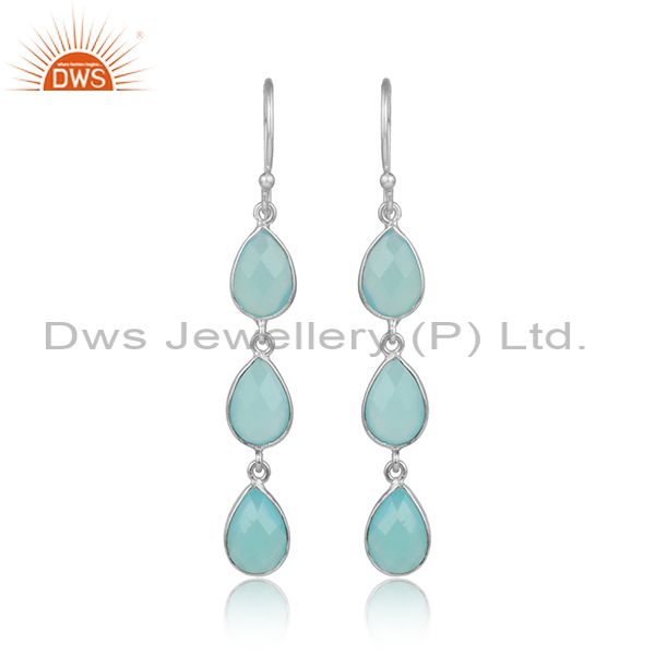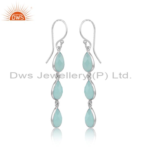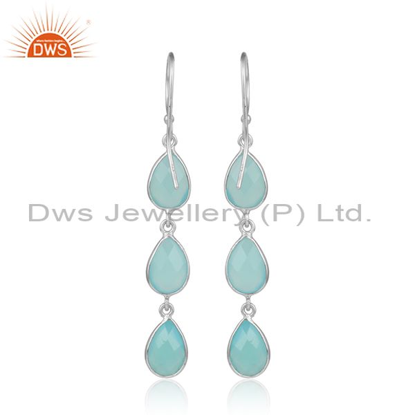 Aqua Chalcedony Gemstone Designer Sterling Fine Silver Earrings
