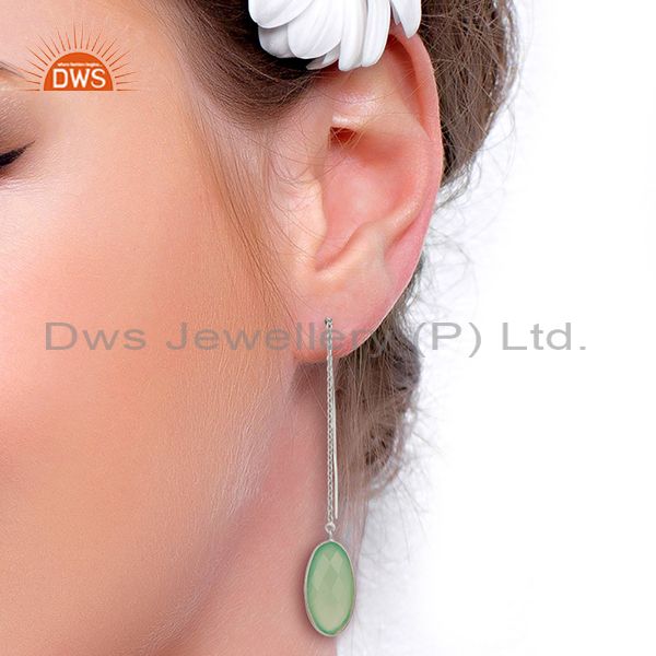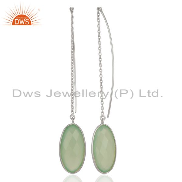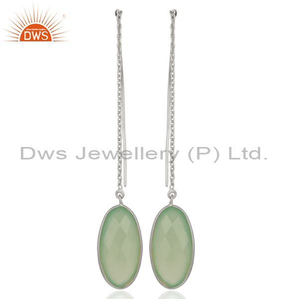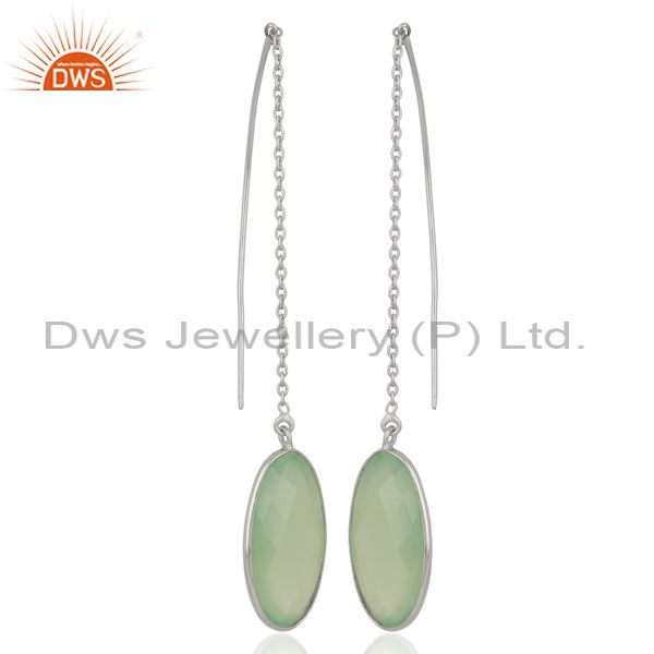 Aqua Chalcedony Gemstone Fine Sterling Silver Chain Earring Wholesaler
