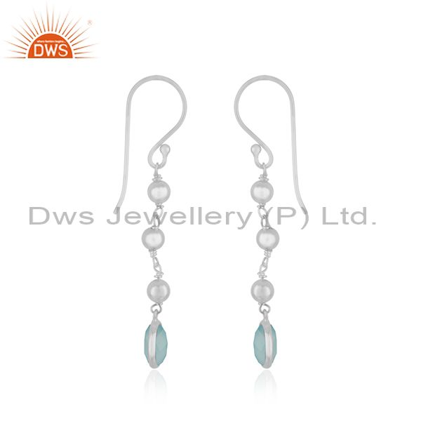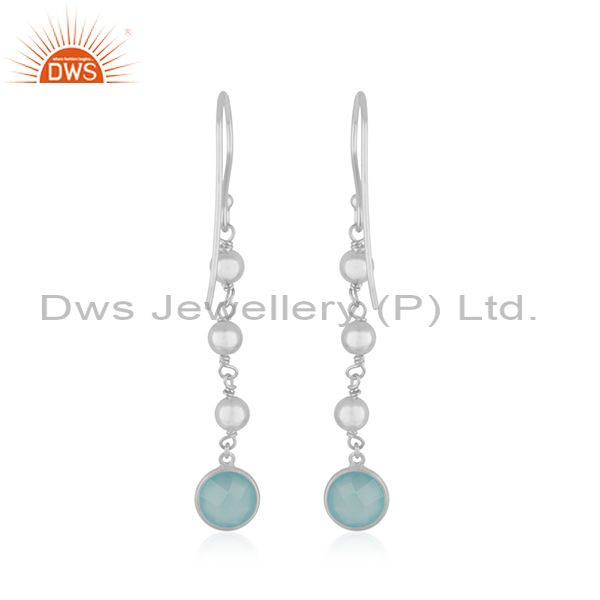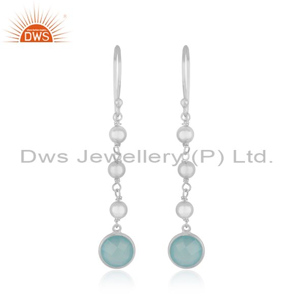 Aqua Chalcedony Gemstone Fine Sterling Silver Earring Manufacturer India