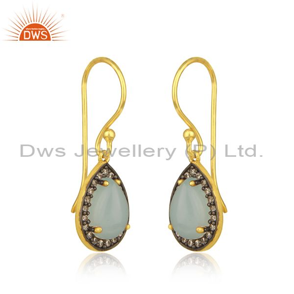 Aqua Chalcedony Gemstone Gold Plated 925 Silver Drop Earrings Jewelry Manufactur