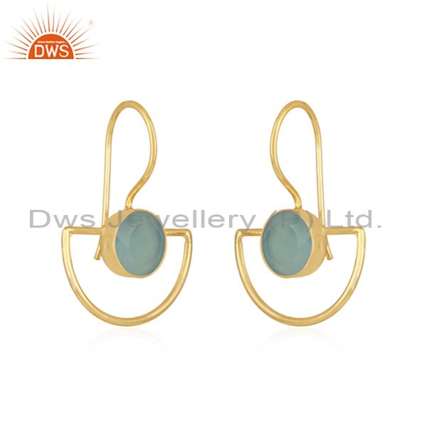 Aqua Chalcedony Gemstone Gold Plated 925 Silver Earring Manufacturer India