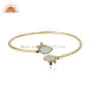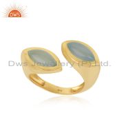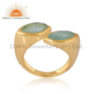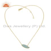Aqua Chalcedony Gemstone Gold Plated 925 Sterling Silver Earrings