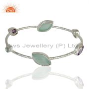 Aqua Chalcedony Gemstone White Topaz Gemstone Silver Earrings Jewelry