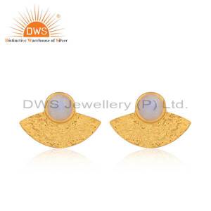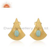Aqua Chalcedony Gold On 925 Silver Textured Fan Studs