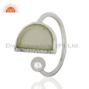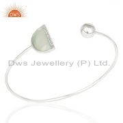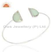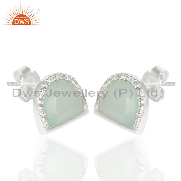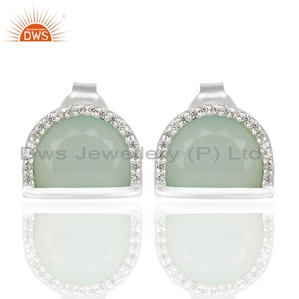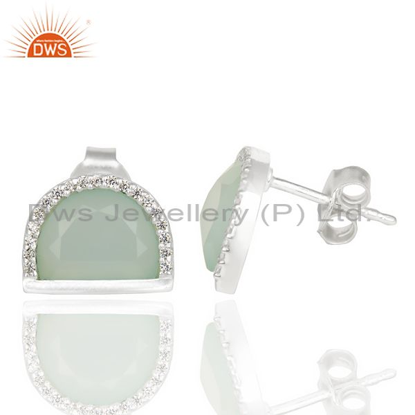 Aqua Chalcedony Half Moon Cz Stud 92.5 Sterling Silver Trendy Earring