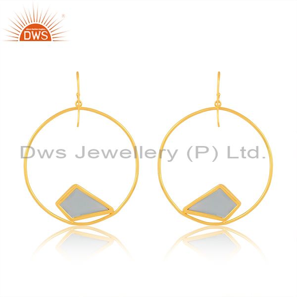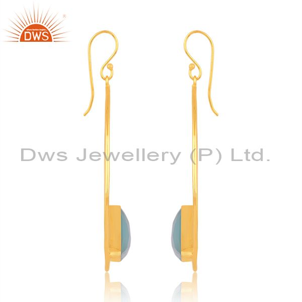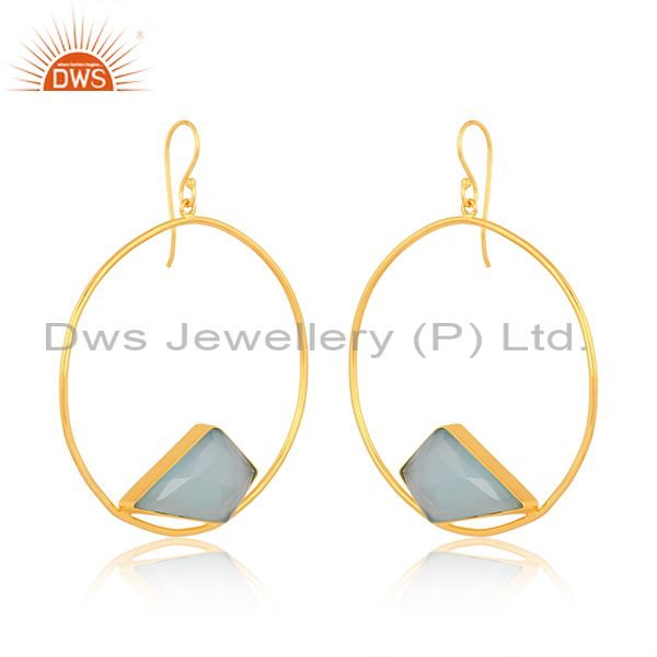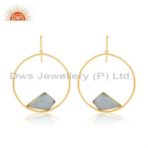 Aqua Chalcedony Set 18K Gold On Brass Round Earwire Earrings