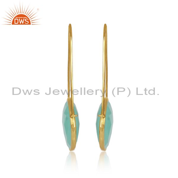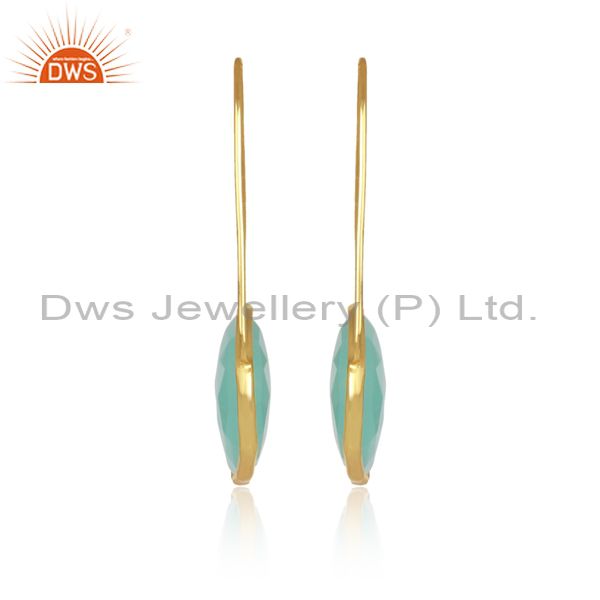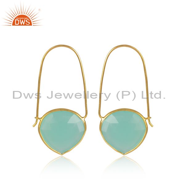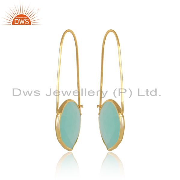 Aqua Chalcedony Set Brass Gold Designer Statement Earrings