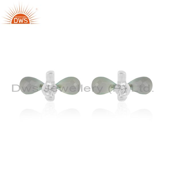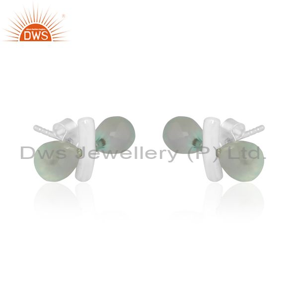 Aqua chalcedony set fine 925 silver abstract design earrings