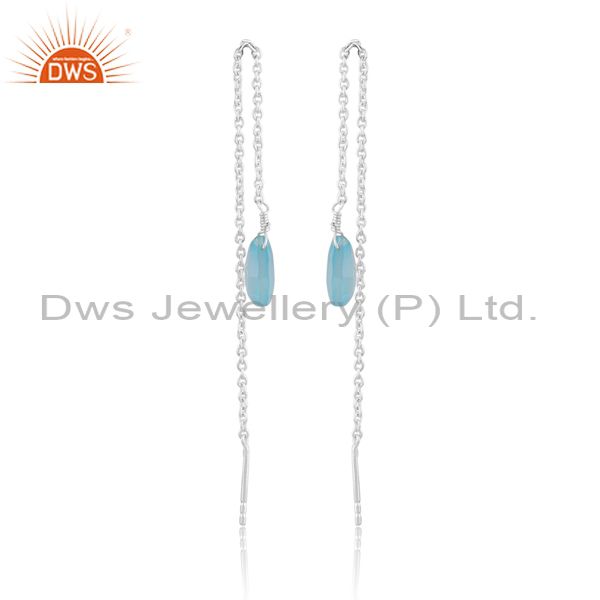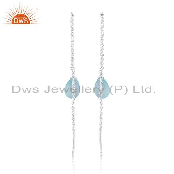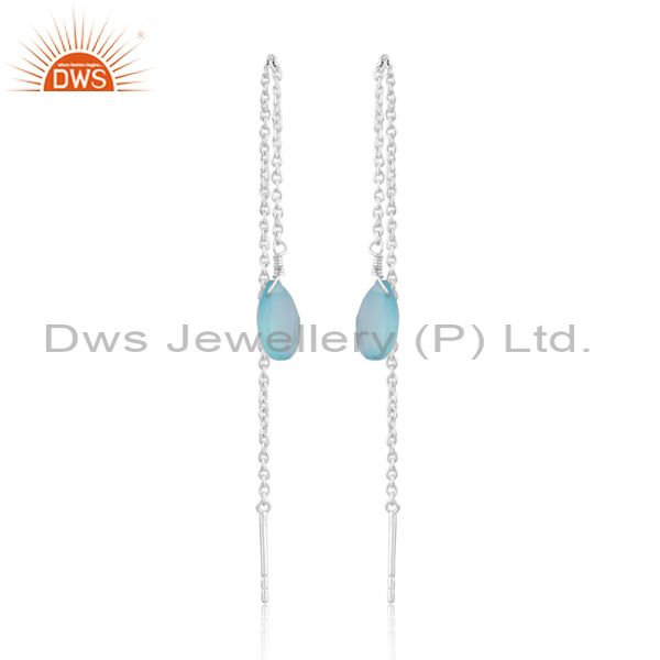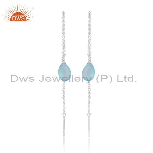 Aqua Chalcedony Set Fine Silver Needle And Thread Earrings