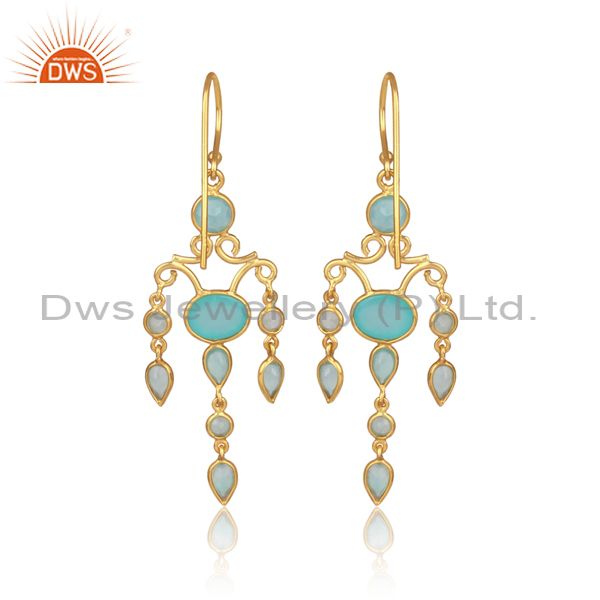 Aqua Chalcedony Set Gold On 925 Silver Chandelier Earrings