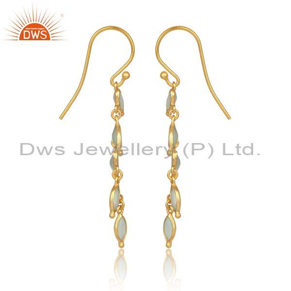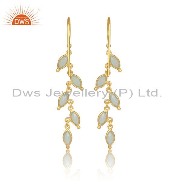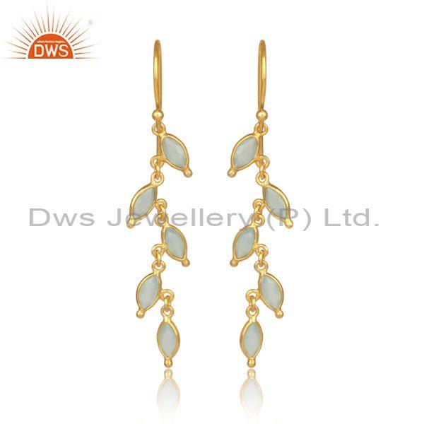Aqua Chalcedony Set Gold On 925 Silver Petal Shaped Earrings