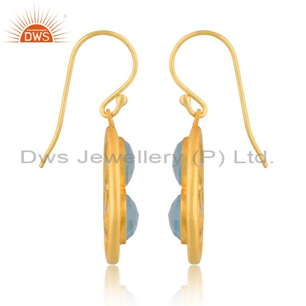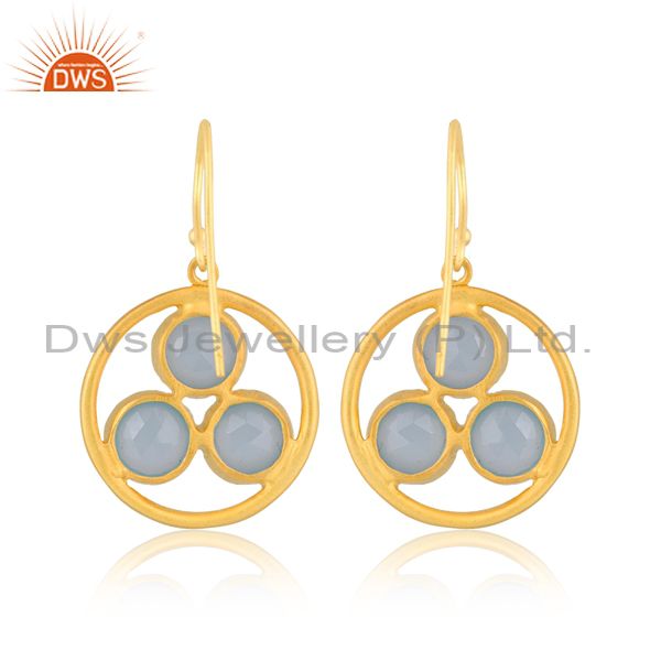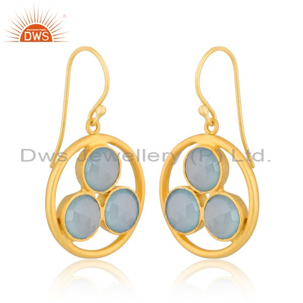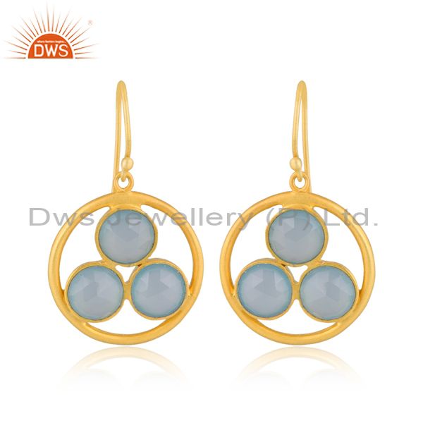 Aqua Chalcedony Set Gold On 925 Silver Round Hoop Earrings
