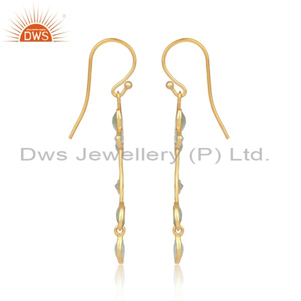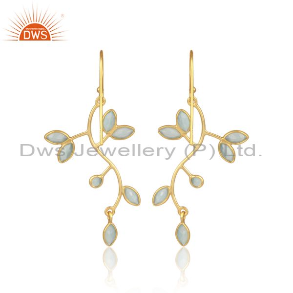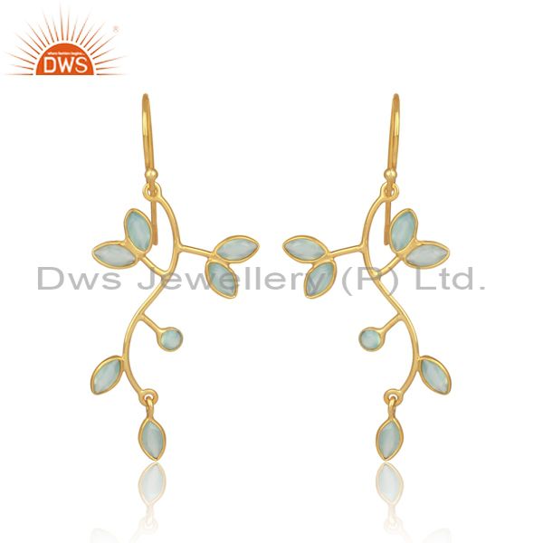 Aqua Chalcedony Set Gold On Silver Designer Branch Earrings