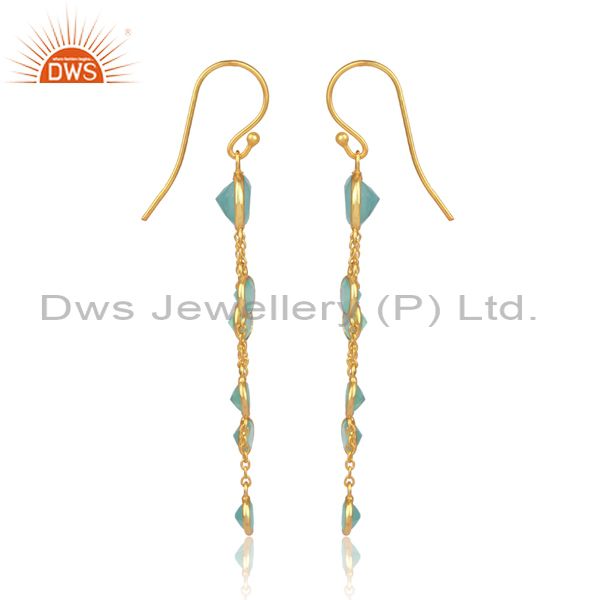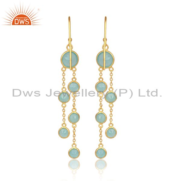 Aqua Chalcedony Set Gold On Silver Long Statement Earrings