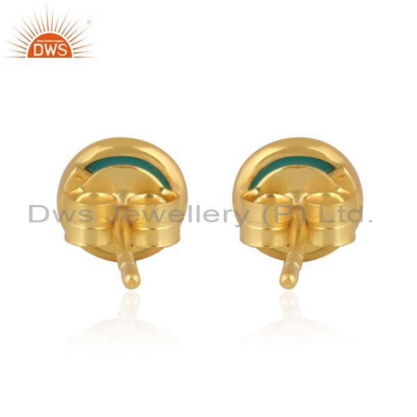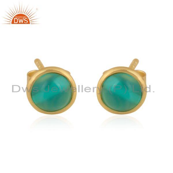 Aqua Chalcedony Set Gold On Silver Round Classic Earrings