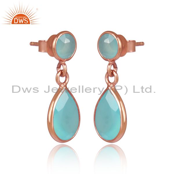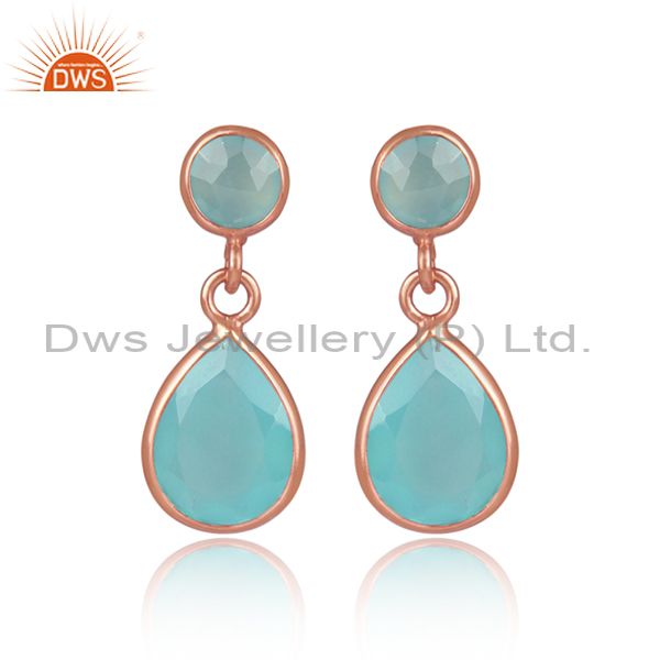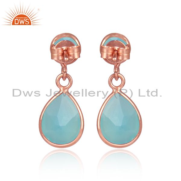 Aqua Chalcedony Tear Drop Sterling Silver Rose Gold Earrings