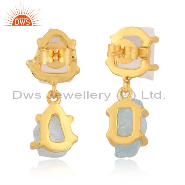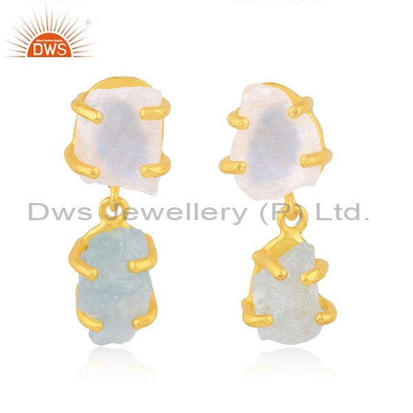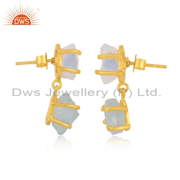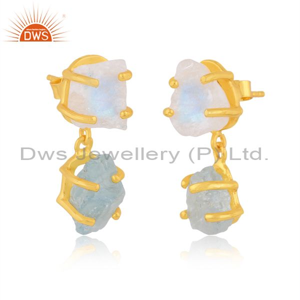 Aquamarine And Rainbow Moon Stone Gold On Silver Earrings