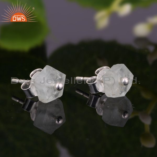 Aquamarine Coin Set Fine Sterling Silver Hexagonal Earrings