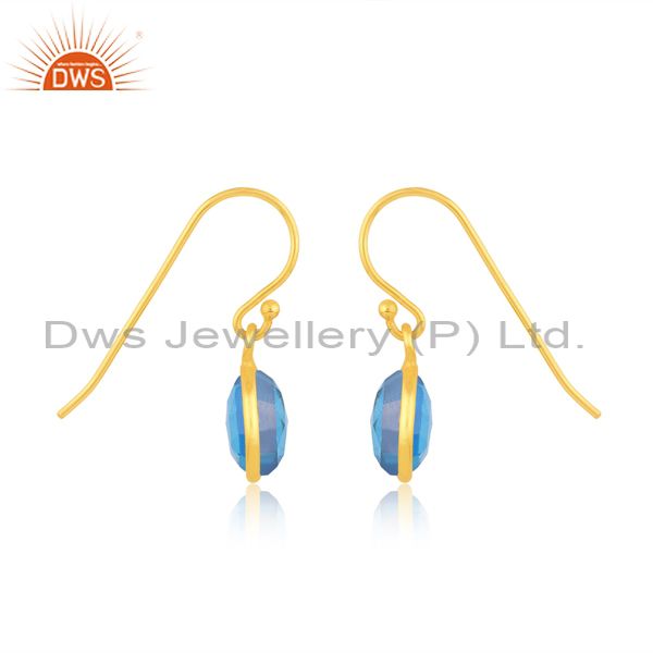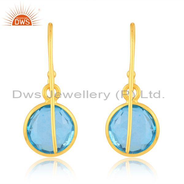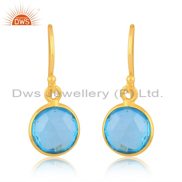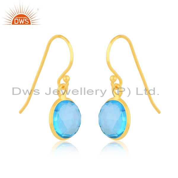 Aquamarine Quartz With 18K Gold Sterling Silver Earring