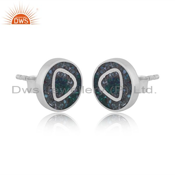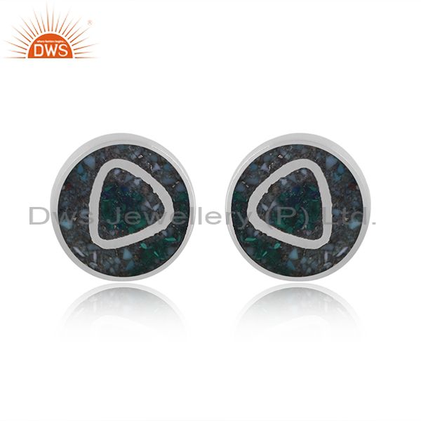 Arizona Turquoise Coin Set Silver Triangle Design Earrings