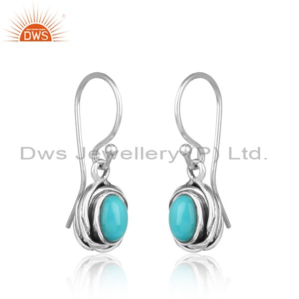 Arizona Turquoise Set Cabushion Silver Drop Earrings
