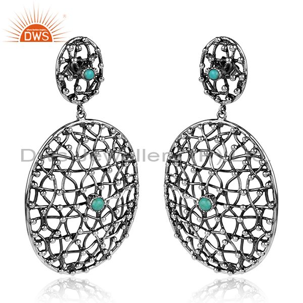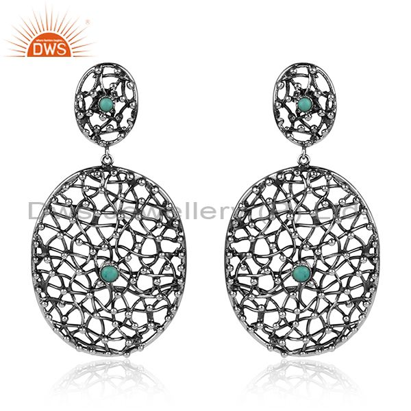 Arizona Turquoise Set Oxidized Silver Spun Style Earrings