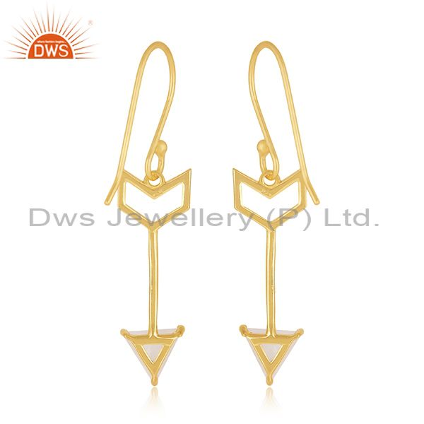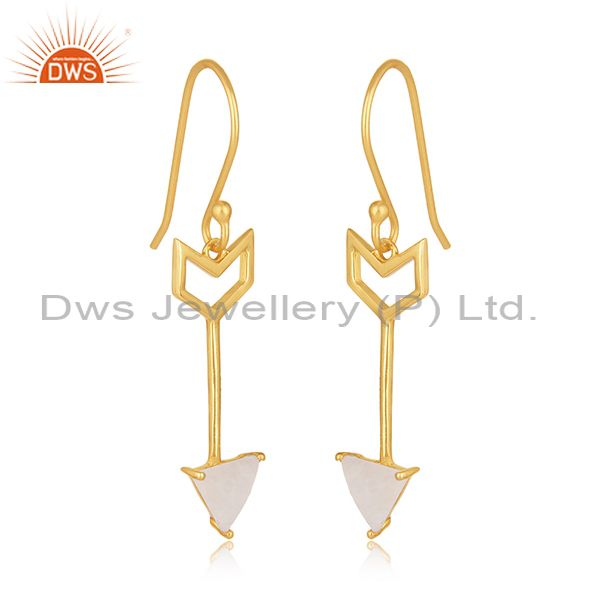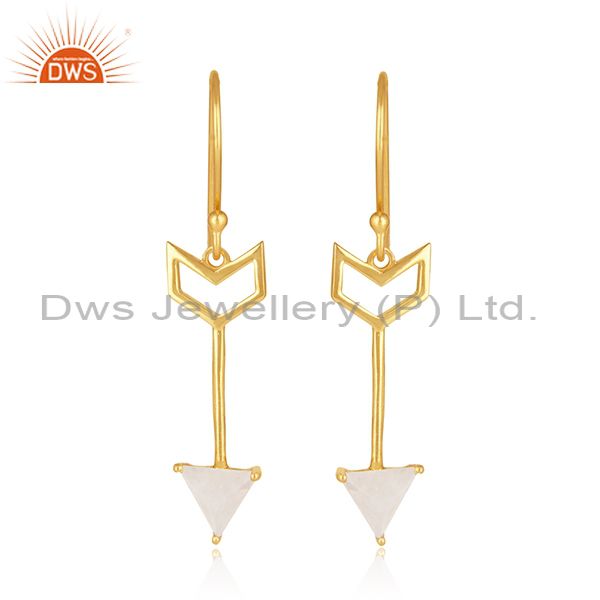 Arrow Desgin 925 Silver Gold Plated Moonstone Dangle Earring Wholesale