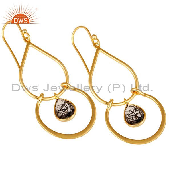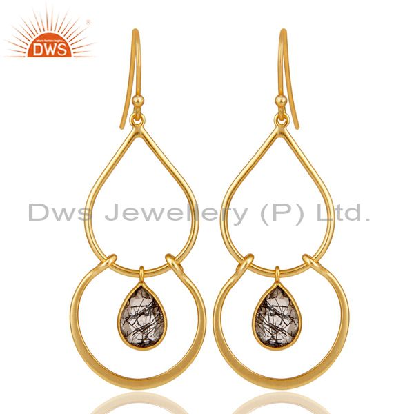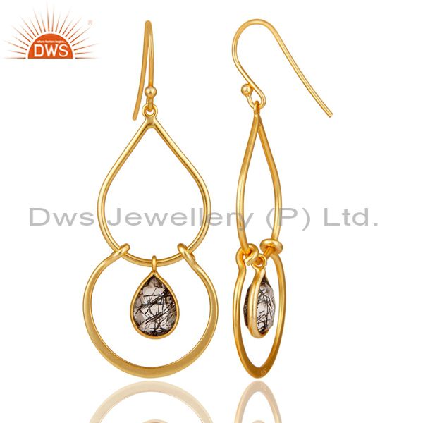 Art Deco Black Rutile 18K Gold Plated Sterling Silver Earring