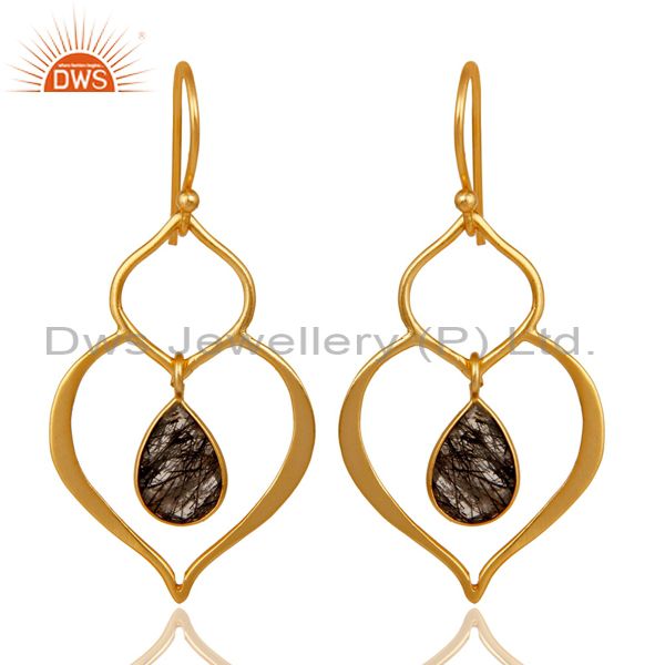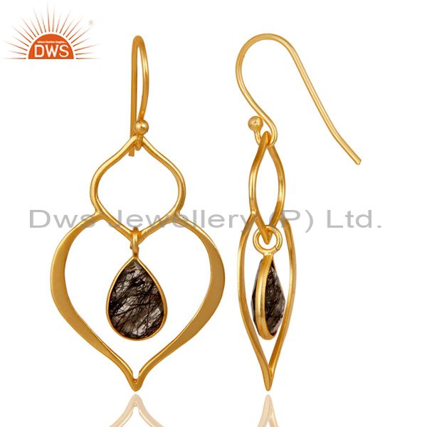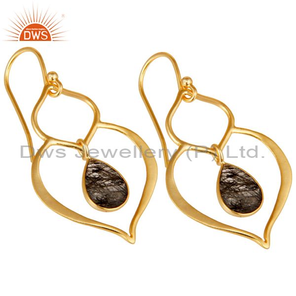 Art Deco Black Rutile 18K Gold Plated Sterling Silver Heart Shape Earring