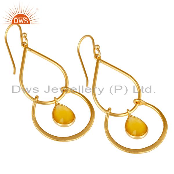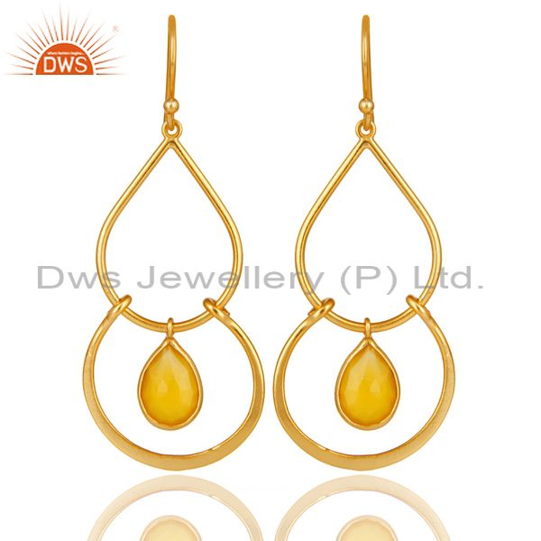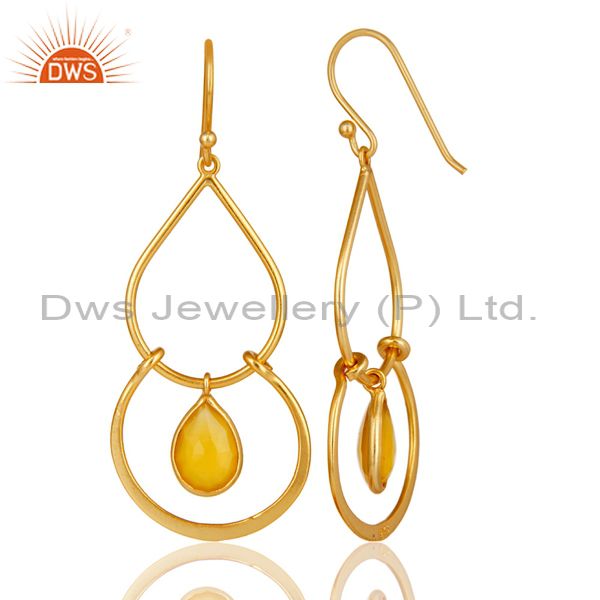 Art Deco Yellow Chalcedony 18K Gold Plated Sterling Silver Earring