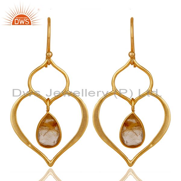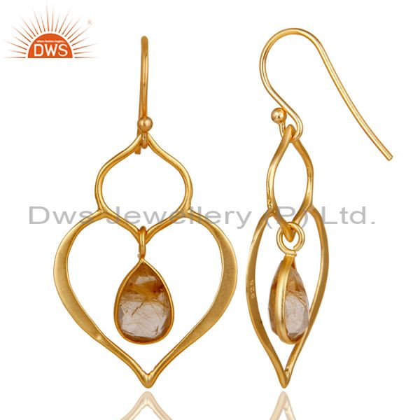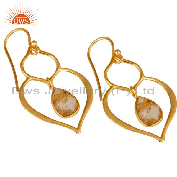 Art Deco Yellow Rutile 18K Gold Plated Sterling Silver Heart Shape Earring