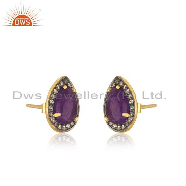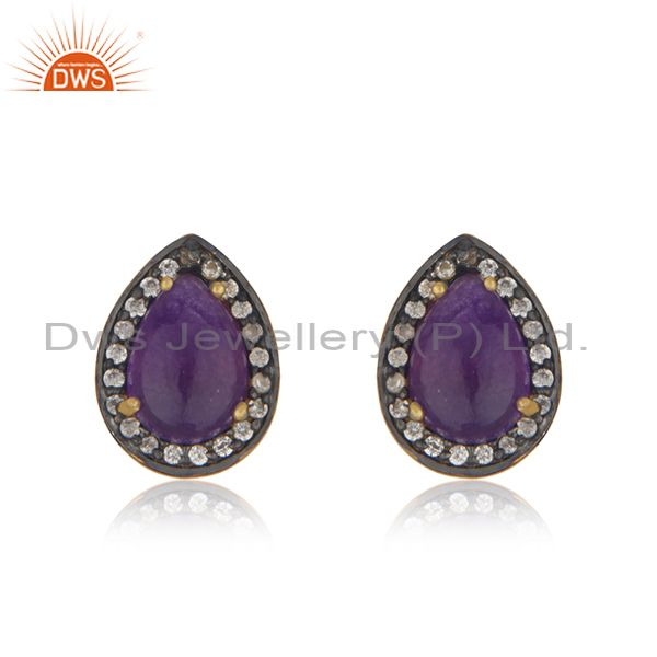 Aventurine Gemstone 925 Silver Stud Earrings Manufacturer of Jewelry