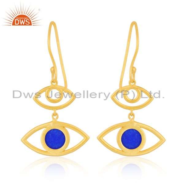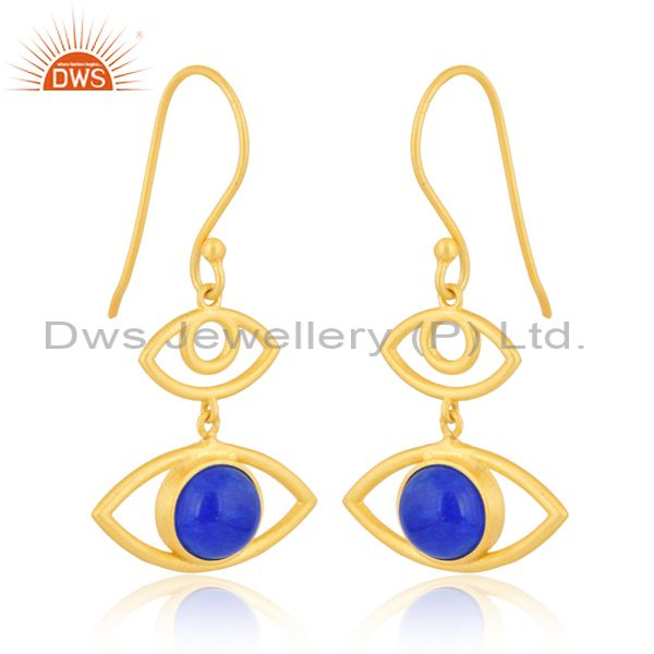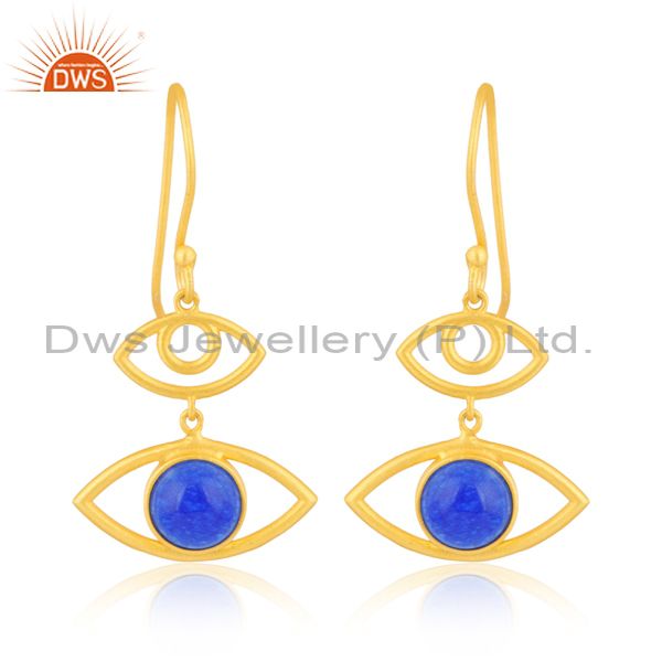 Aventurine Natural Blue Quartz 18K Gold On Brass Earrings