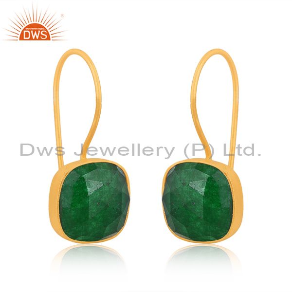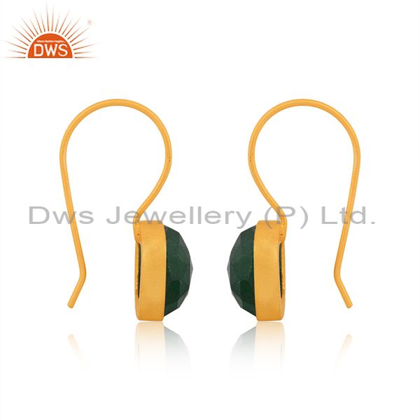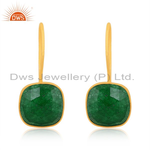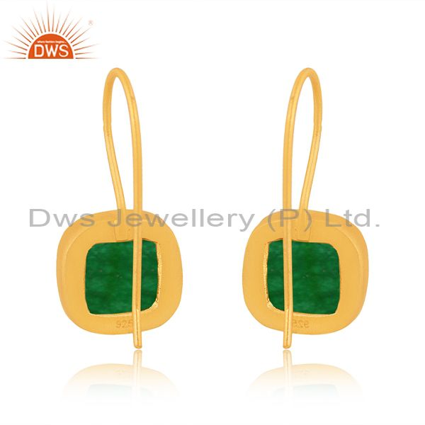 Aventurine Natural Green Quartz Set Gold On Silver Earring