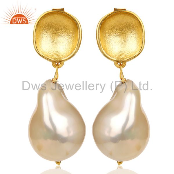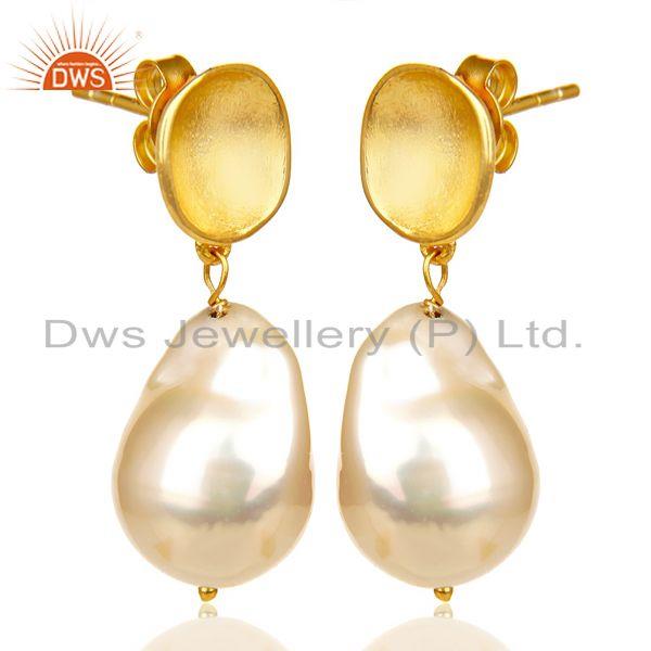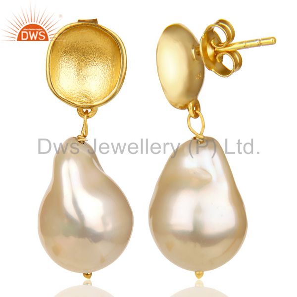 Baroque Fresh Water Pearl Long Dangle 14 K Golld Plated 92.5 Silver Earring