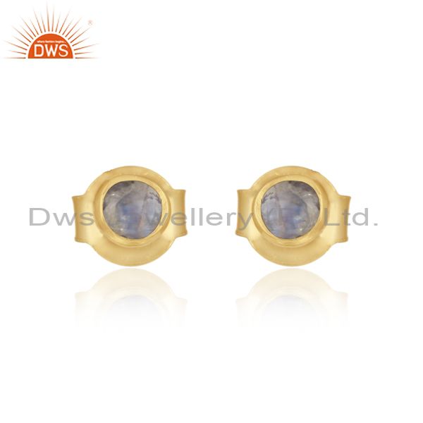 Basic Dainty Stud In Yellow Gold On Silver With Rainbow Moonstone