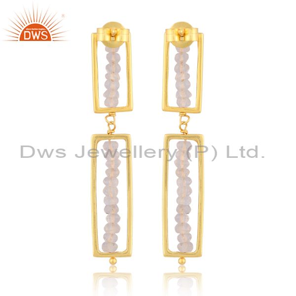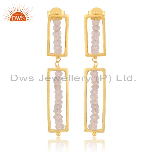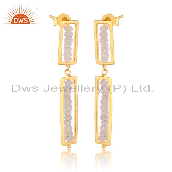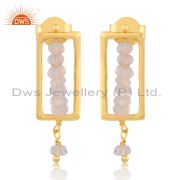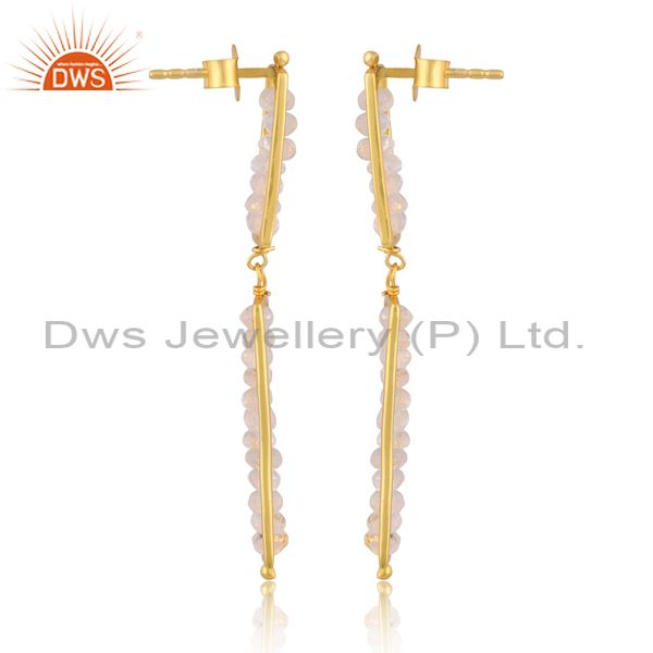 Beaded Rainbow Moonstone Gold Plated Silver Dangle Earrings Jewelry