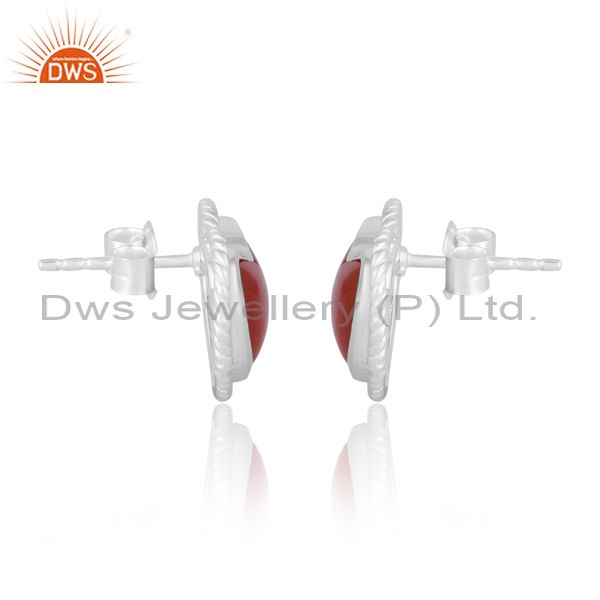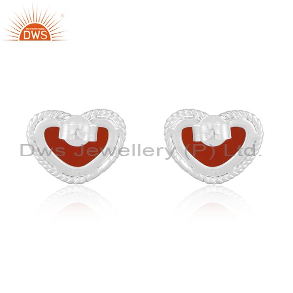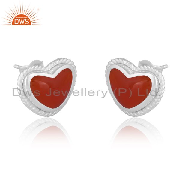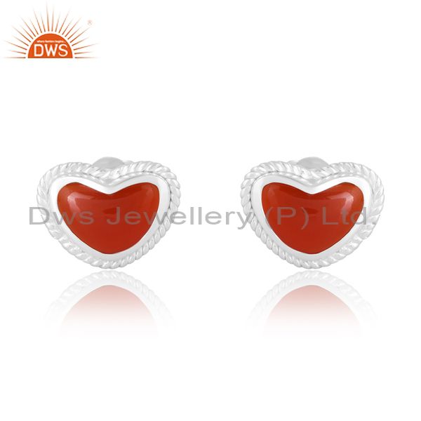 Beautiful Valentine Heart Stud With Red Onyx And Silver Line