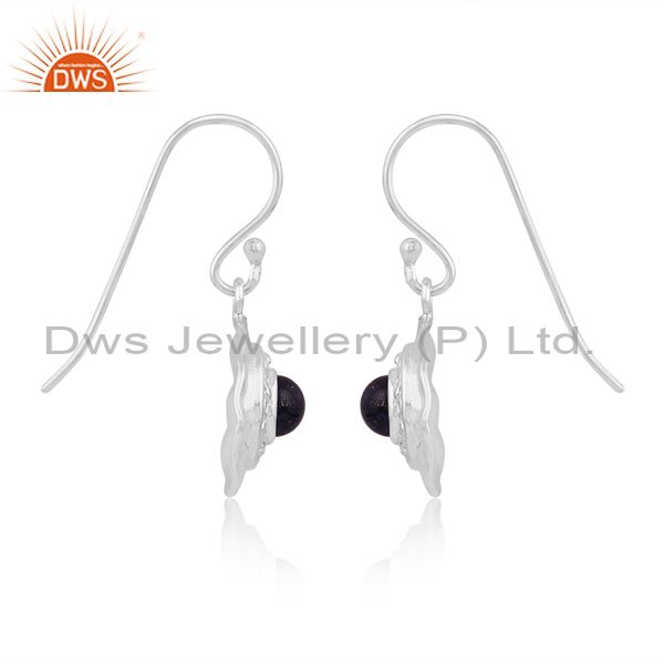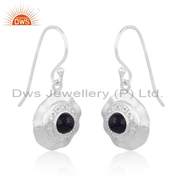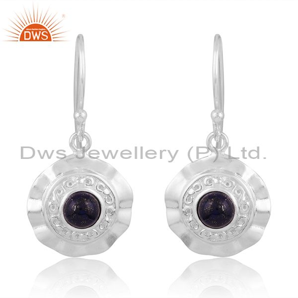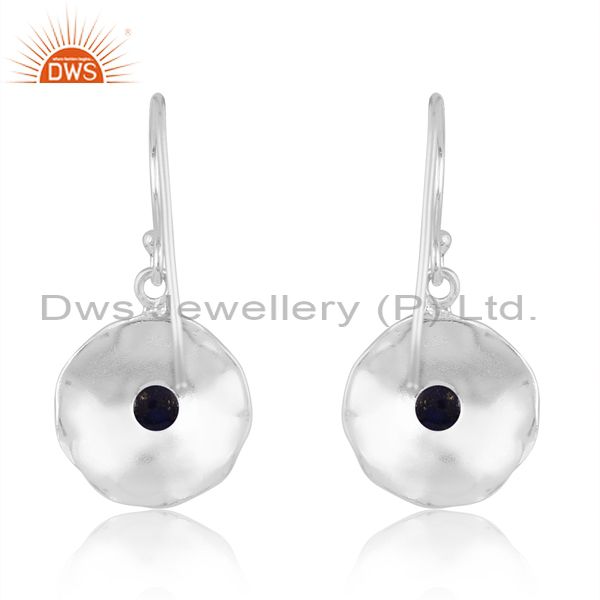 Beautiful White Sterling Silver Earring With Lapis On Top