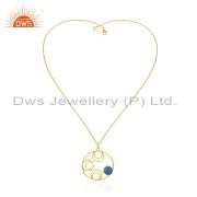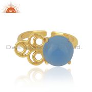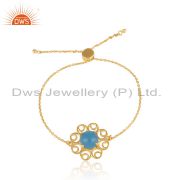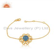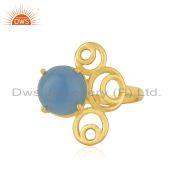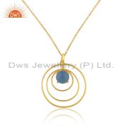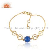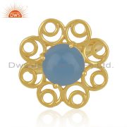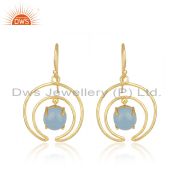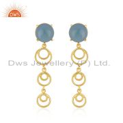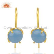 Beautiful Wire Design Gold Plated 925 Silver Blue Chalcedony Earrings