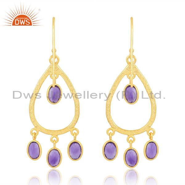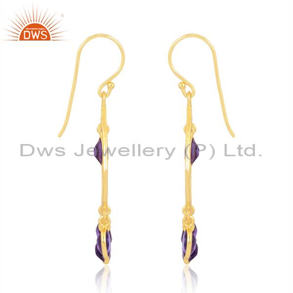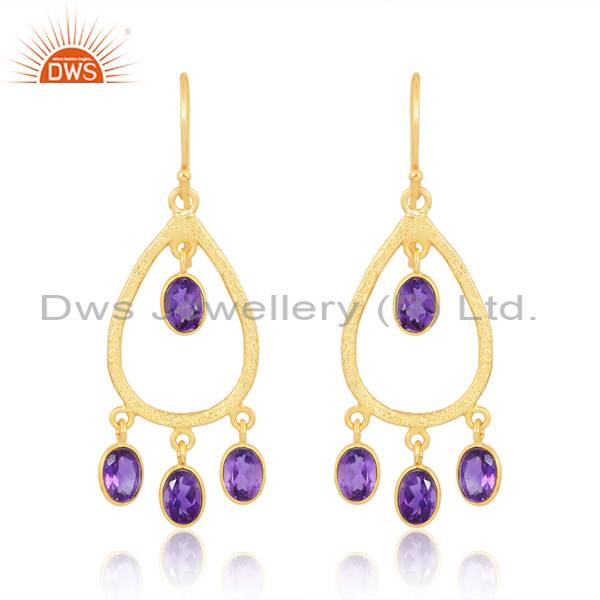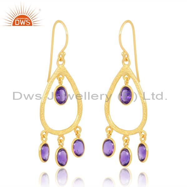 Beautiful18k Gold Sterling Silver Amethyst Cut Oval Earrings