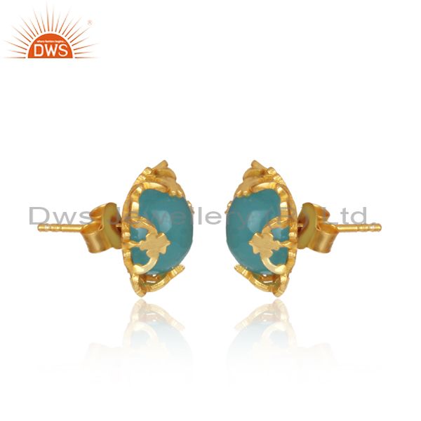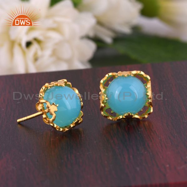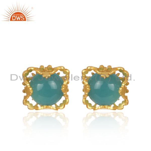 Best Selling Gold Plated 925 Silver Chalcedony Gemtone Stud Earrings