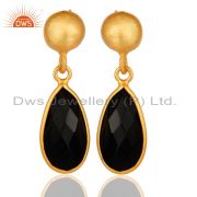 Bezel-Set Faceted Black Onyx Drop Earrings - 18K Gold Plated Sterling Silver