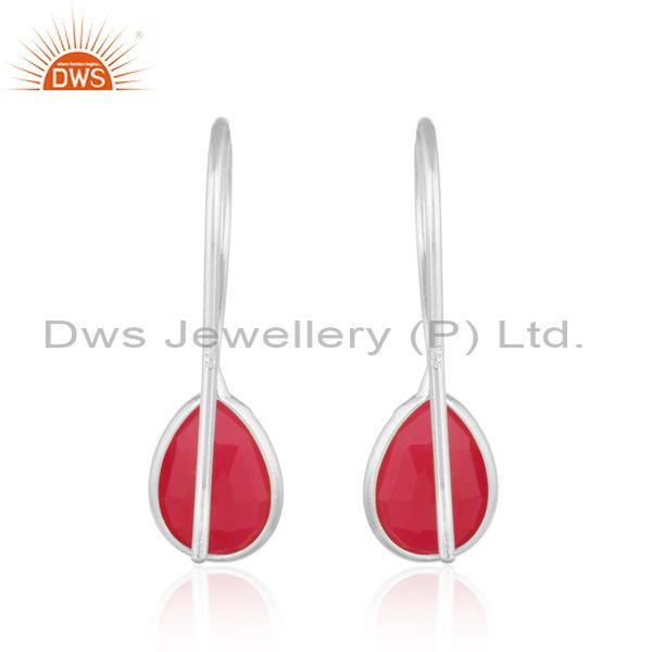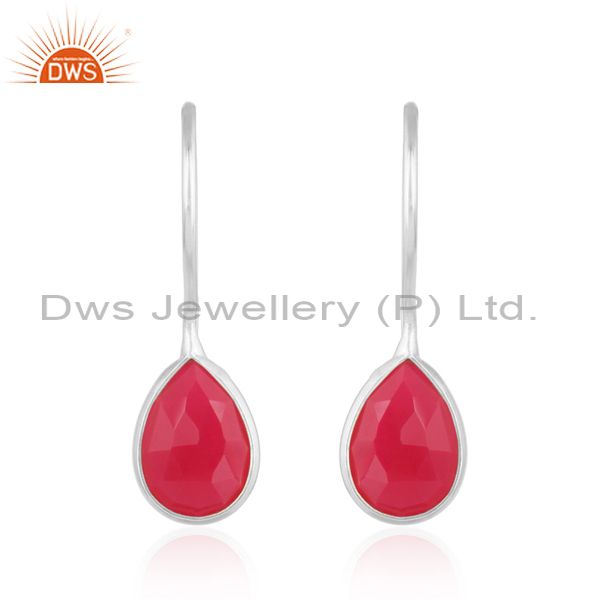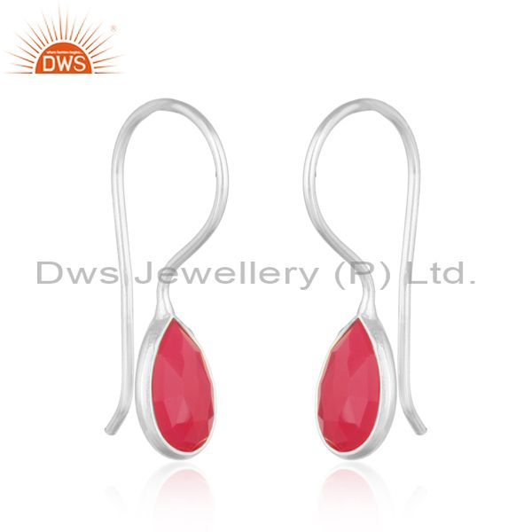 Bezel Set Sterling Silver 925 Drop Earring With Pink Chalcedony