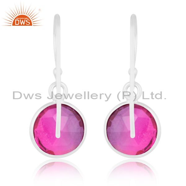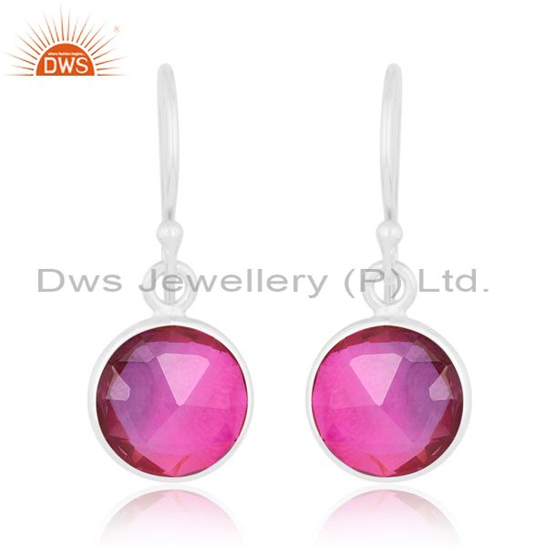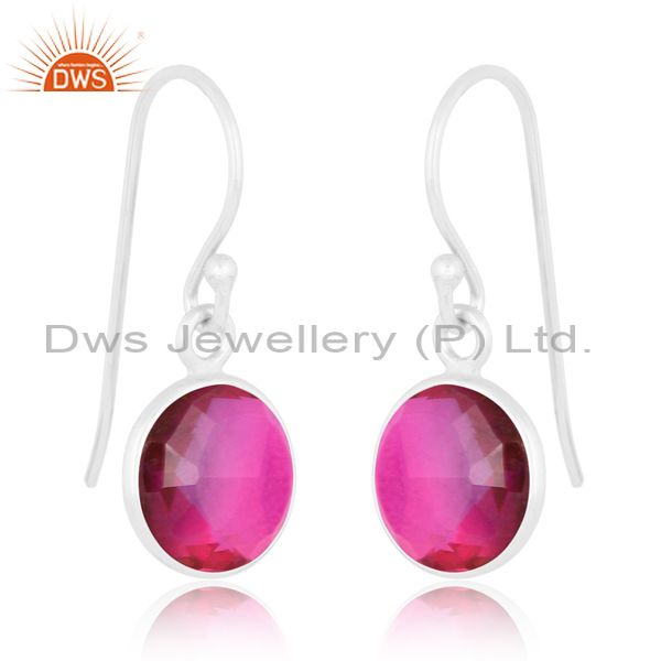 Bio Amethyst Quartz On White Sterling Silver Earring